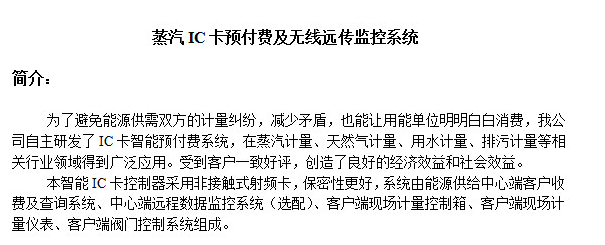 蒸汽、燃氣IC卡預付費系統(tǒng)